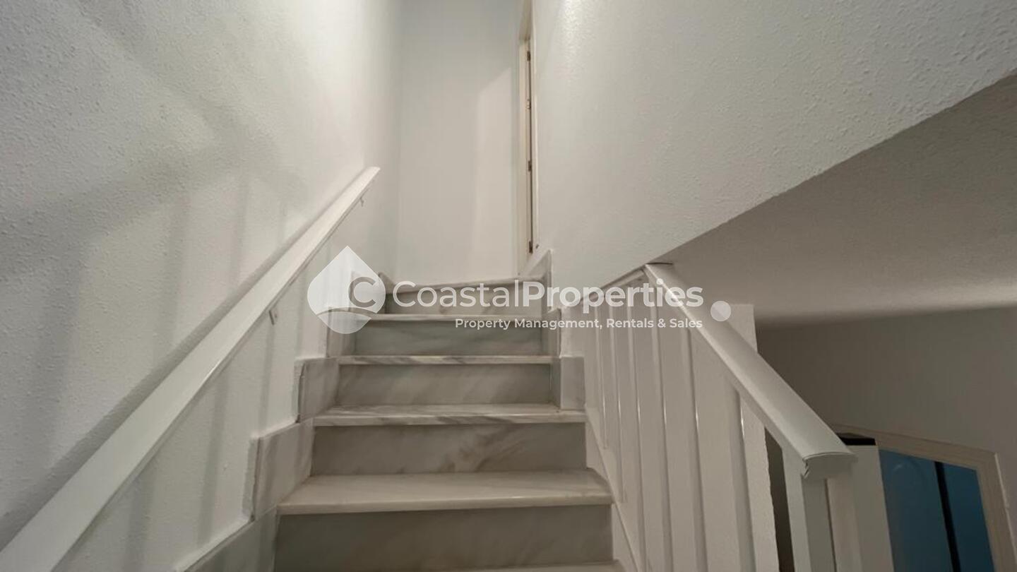 The townhouse is part of a community with a communal swimming pool and includes a private parking space. Its location is unbeatable: close to the beach, restaurants, bars, leisure centres, and a commercial park, with all amenities within easy reach and no need for a car.